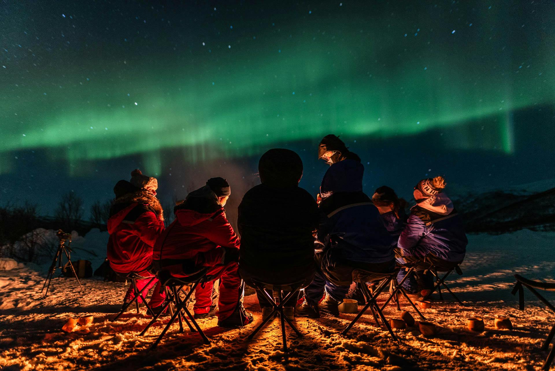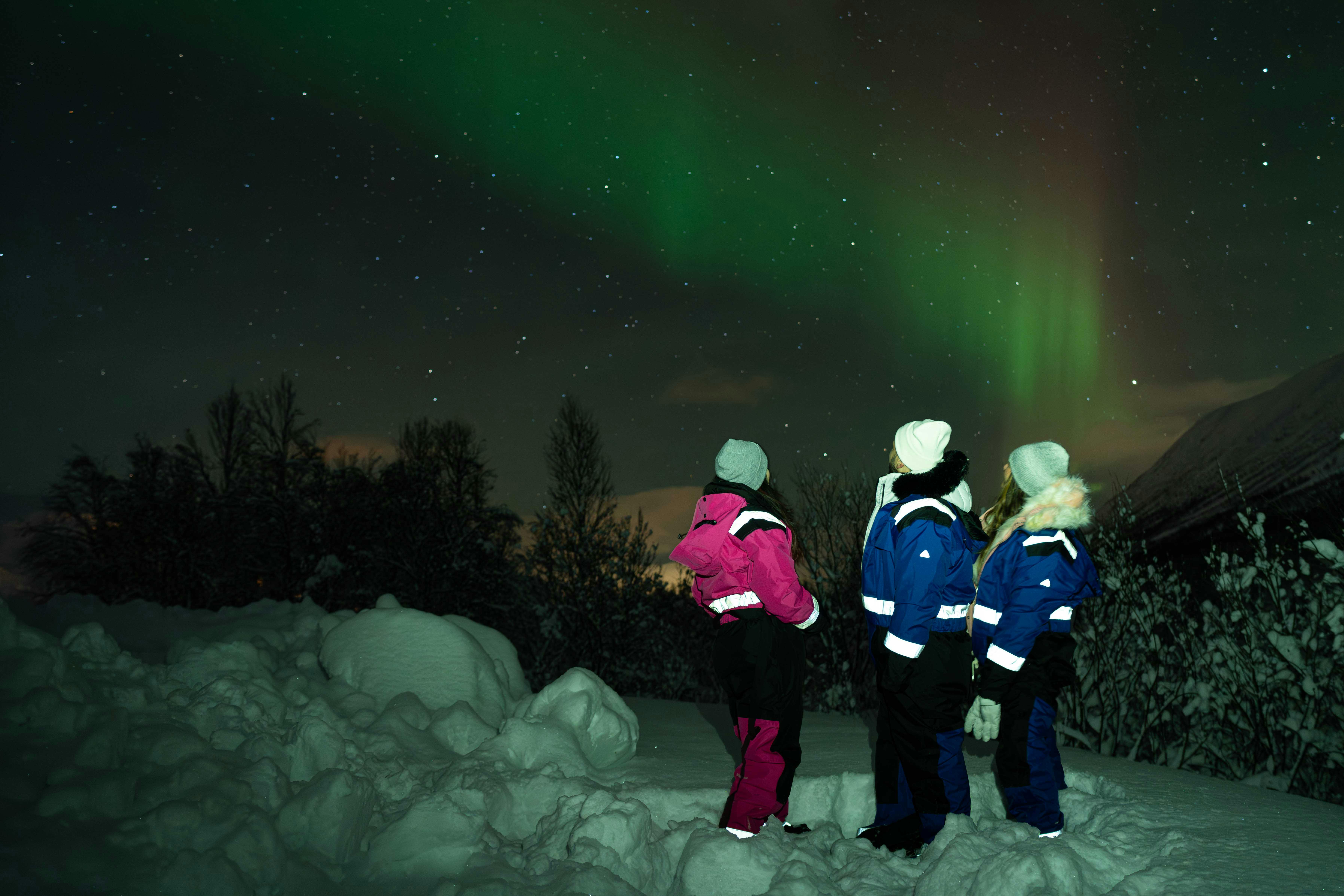 To keep you warm during the Arctic night, we provide thermal suits, but we recommend wearing your warmest clothes, gloves, and shoes.